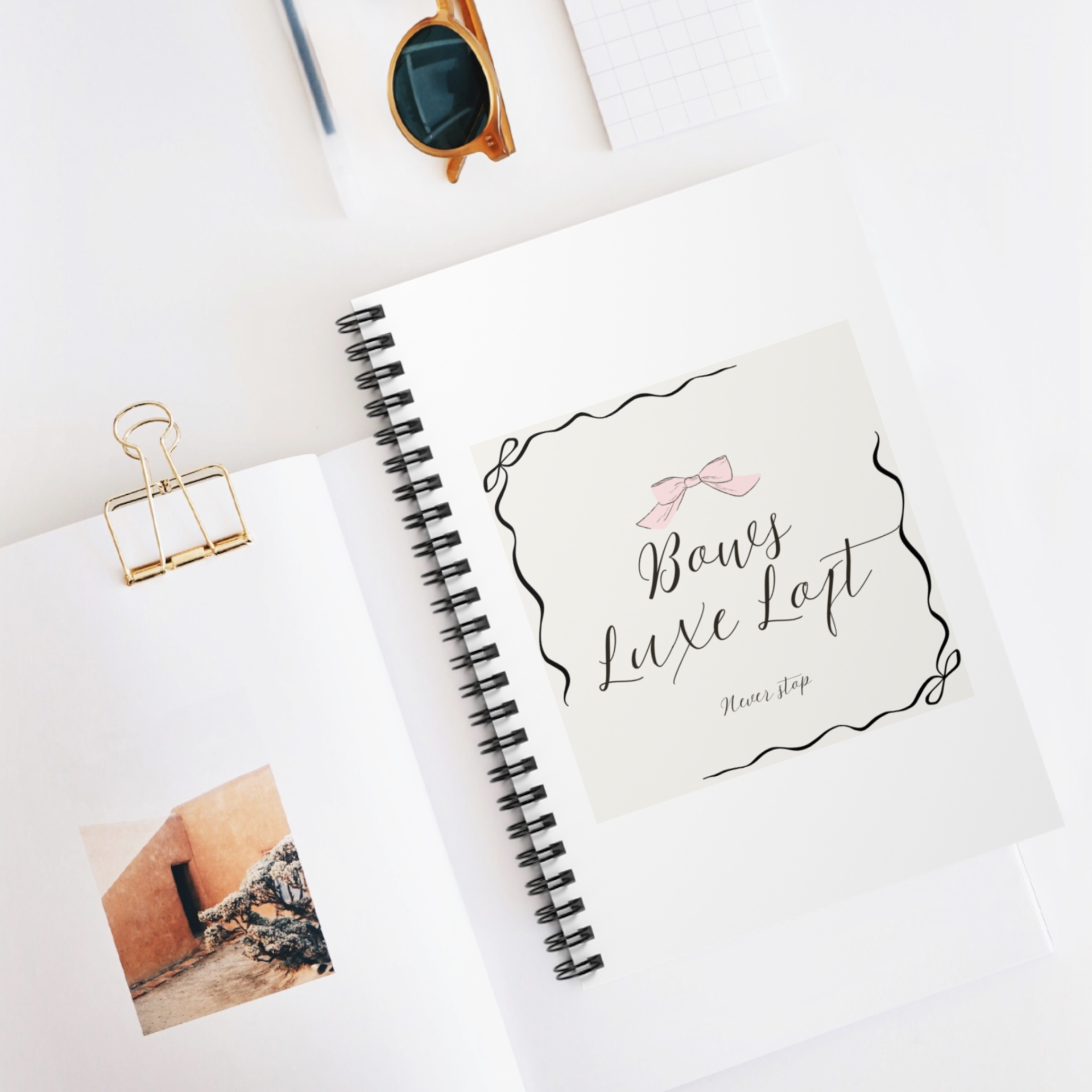 Its is our notebook wiith the Bows Luxe Loft logo its a meduim side notebook.